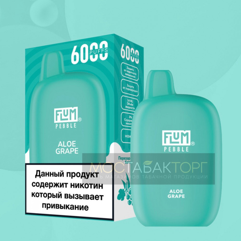 FLUM видыPebble | FLUM вкусыАлоэ Виноград | FLUM количество в блоке10 шт |