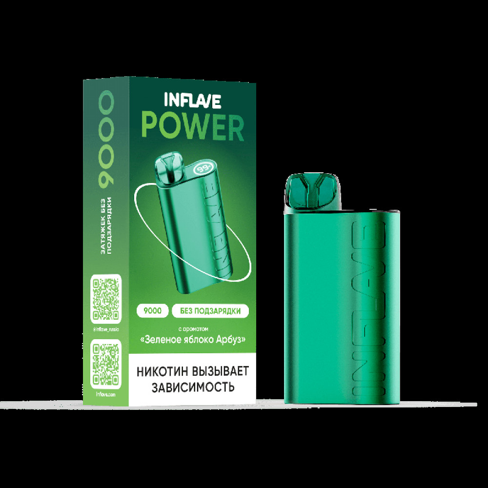 Электронная сигарета INFLAVE POWER 9000 затяжек Зеленое Яблоко Арбуз - купить в Воронеже